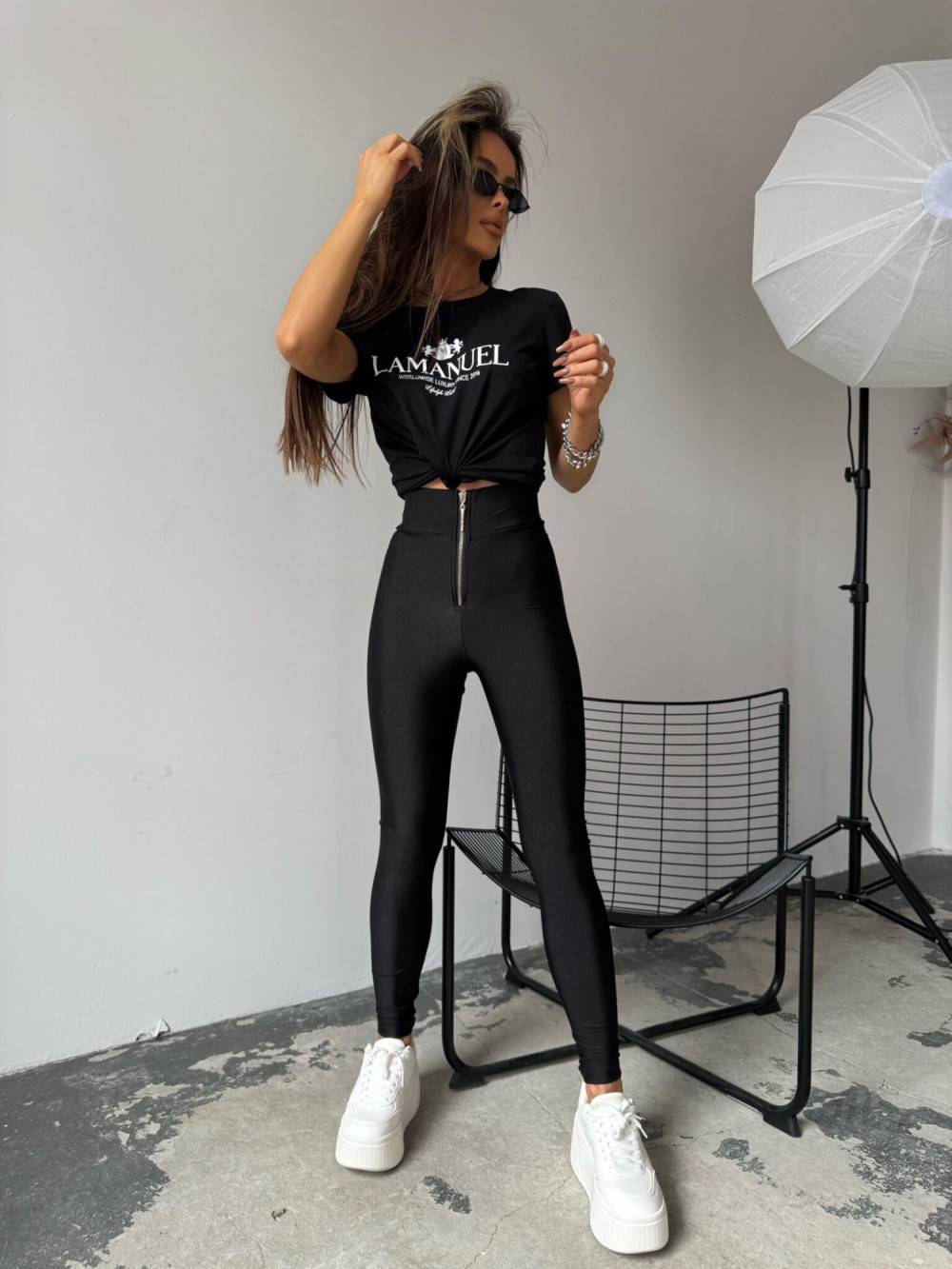 Legginsy BEFORE czarne La Manuel to idealne połączenie stylu, kobiecości i komfortu. Zaprojektowane, by podkreślać sylwetkę i zapewniać pełną swobodę ruchów, wykonane zostały z podwójnego, elastycznego materiału, który perfekcyjnie dopasowuje się do ciała. Model posiada wysoki stan, który pięknie akcentuje talię, a marszczenie na pośladkach optycznie unosi i modeluje figurę, nadając jej zmysłowy kształt. Subtelne logo La Manuel stanowi elegancki detal, a przedni zamek dodaje nowoczesnego, fashion-owego charakteru. To legginsy, które łączą funkcjonalność i design premium – sprawdzą się zarówno w codziennych, jak i sportowych stylizacjach. Noś je do oversize’owego t-shirtu, krótkiej bluzy lub eleganckiego topu – zawsze będą wyglądać wyjątkowo. Idealne dla kobiet, które cenią komfort, styl i perfekcyjne dopasowanie w jednym.