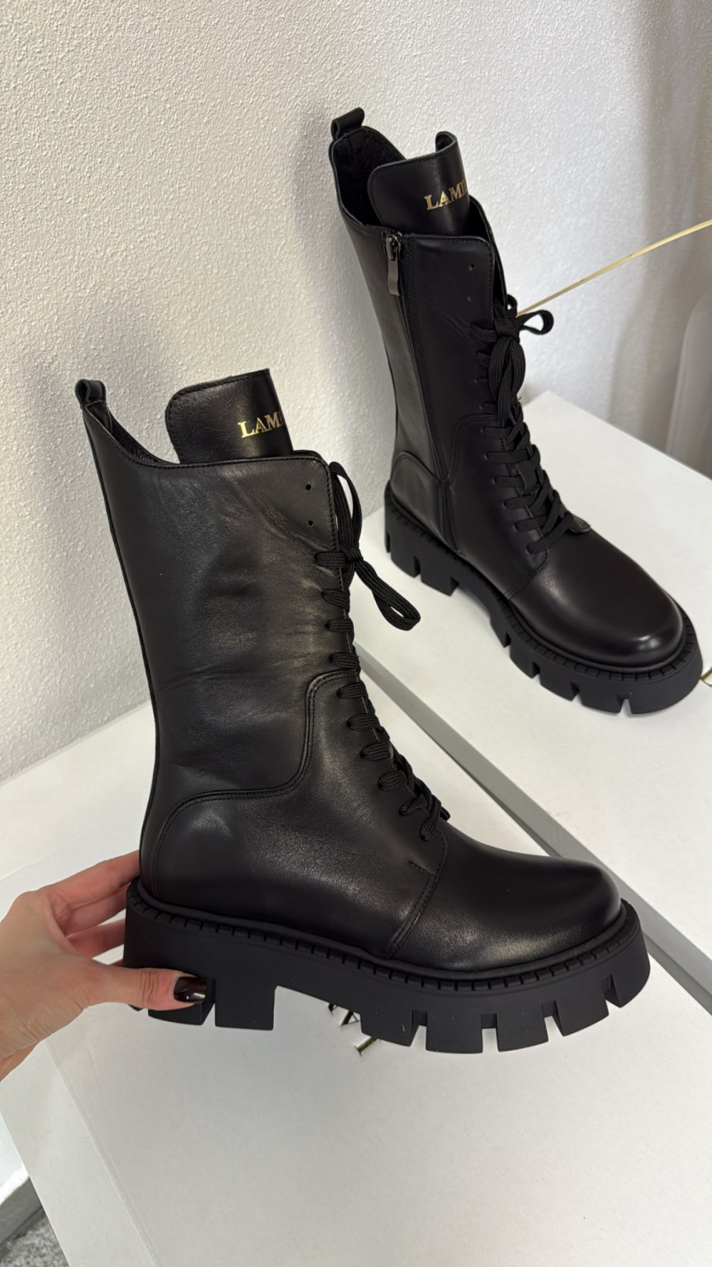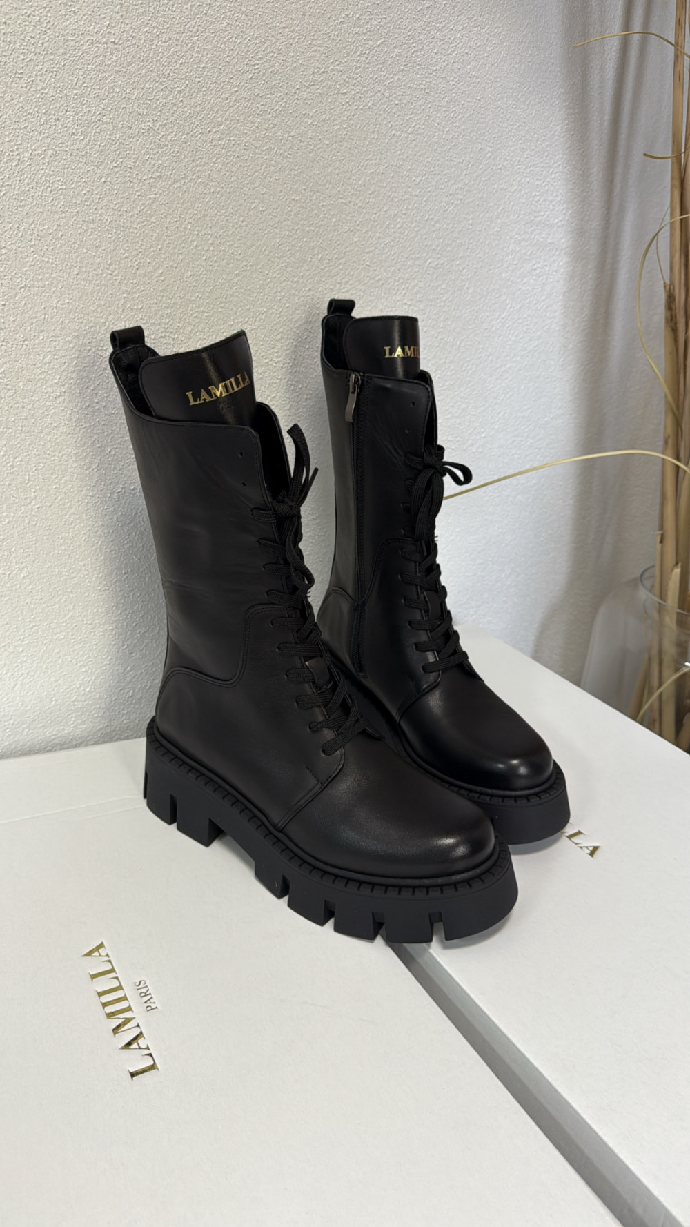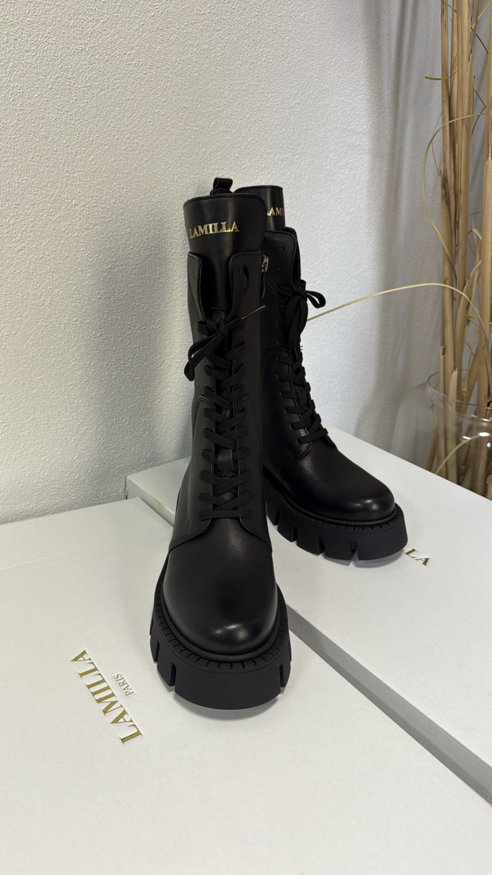 Czarne botki trapery La Milla to kwintesencja nowoczesnego stylu i miejskiego charakteru w luksusowym wydaniu. Wykonane z wysokiej jakości skóry naturalnej, zachwycają solidnym wykonaniem oraz perfekcyjnym dopasowaniem do aktualnych trendów. Model posiada wysoką cholewkę z efektownym logo marki umieszczonym na języku, które nadaje im modowego wyrazu.