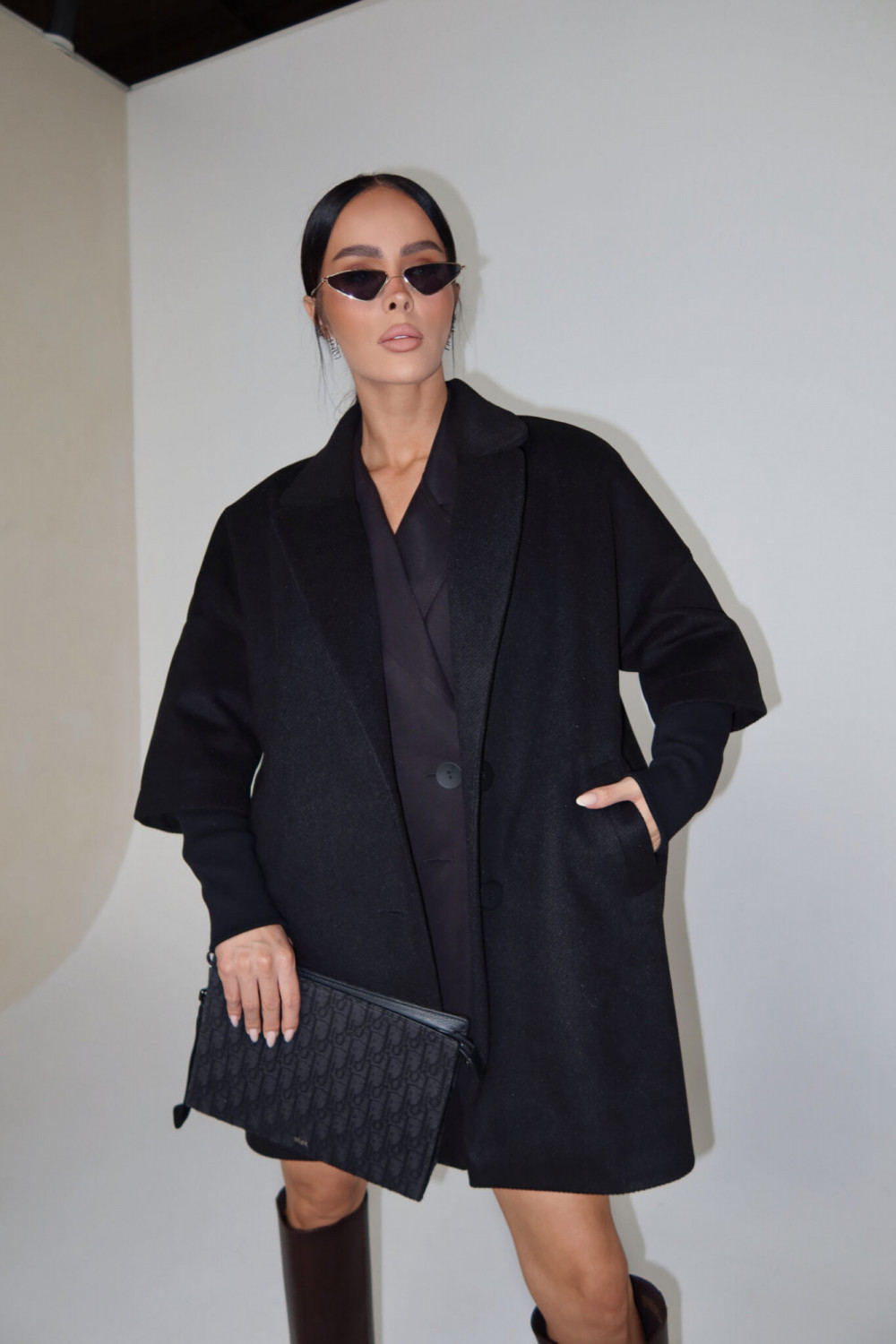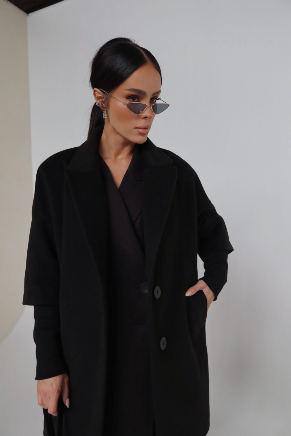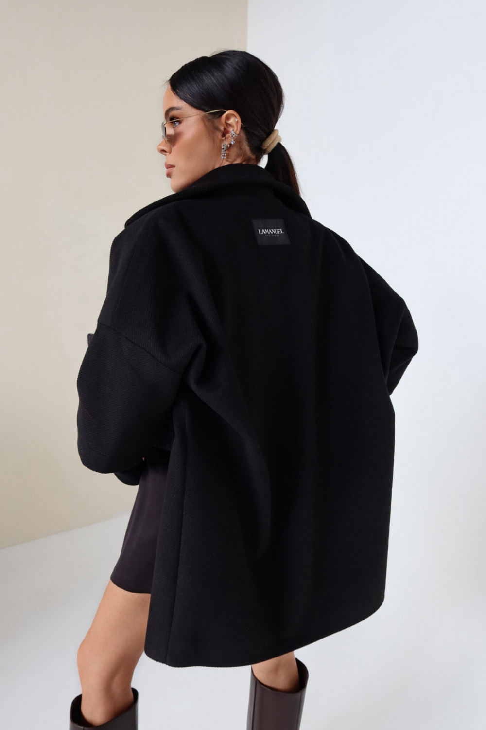 Płaszcz ETERNAL czarny La Manuel to ponadczasowa klasyka w nowoczesnym wydaniu. Bestsellerowy model, który zdobył serca kobiet, powraca w jeszcze bardziej dopracowanej formie. Wykonany z wysokiej jakości tkaniny z dodatkiem wełny, doskonale chroni przed chłodem, zachowując lekkość i wyjątkową elegancję.