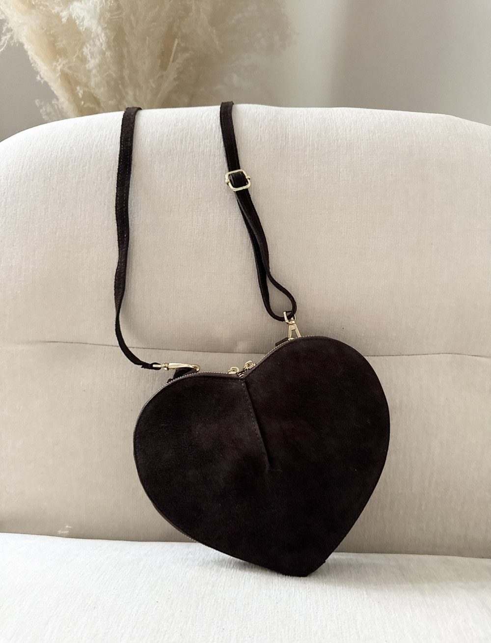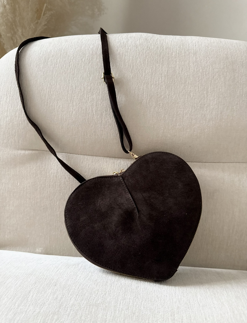 Torebka Laura Biaggi w kształcie serca to wyjątkowy model, który przyciąga uwagę swoim oryginalnym designem i eleganckim wykończeniem. Wykonana z wysokiej jakości skóry zamszowej w kolorze czekoladowym, stanowi idealne połączenie romantycznego stylu i klasycznej elegancji.