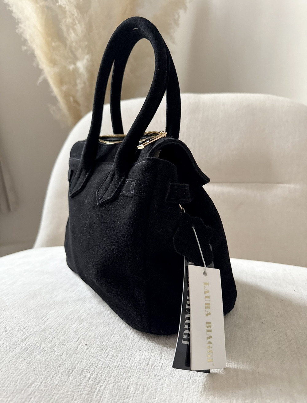 Skórzana zamszowa torebka Hermina czarna Laura Biaggi