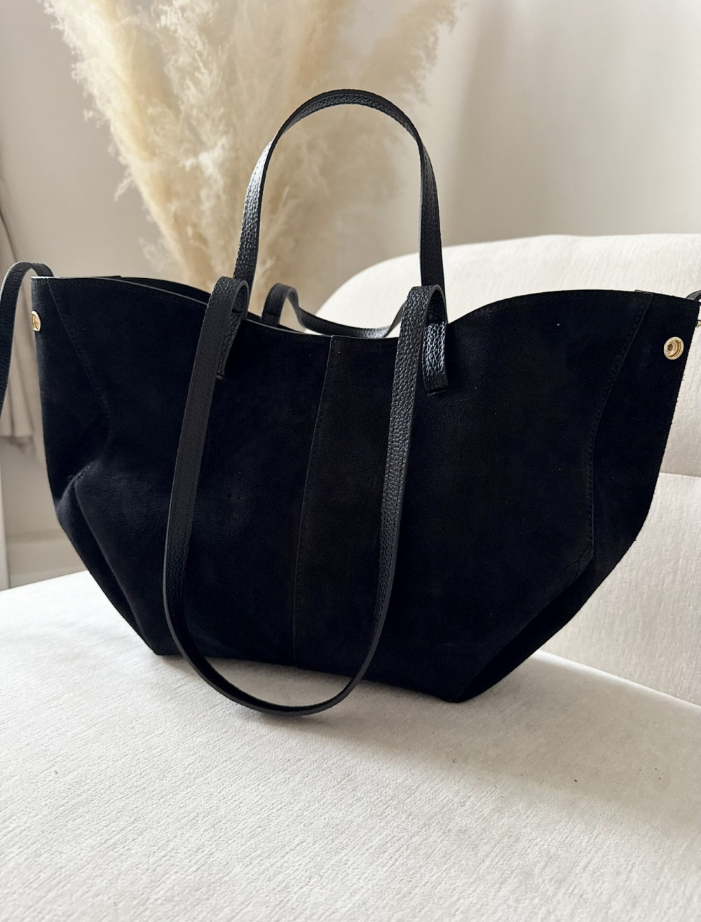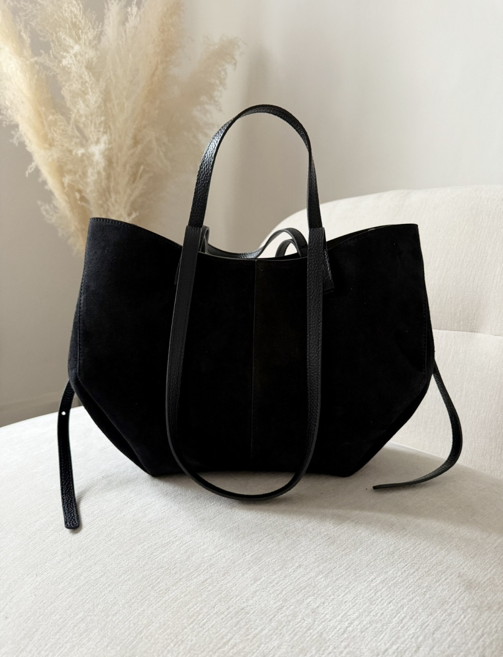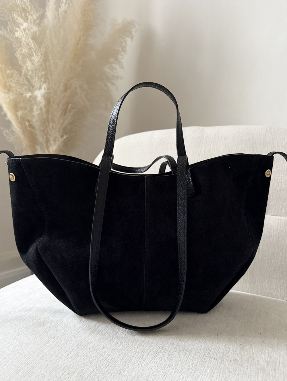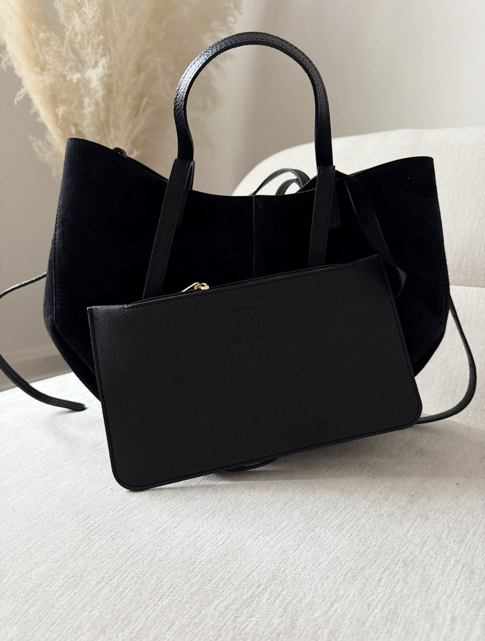 Torebka Laura Biaggi Lena to stylowy model wykonany z połączenia naturalnej skóry i zamszu. Jej minimalistyczna forma i elegancki czarny kolor sprawiają, że doskonale komponuje się z każdą stylizacją — zarówno codzienną, jak i bardziej formalną.