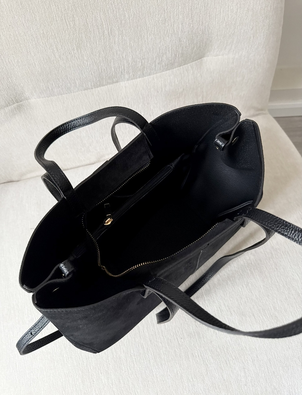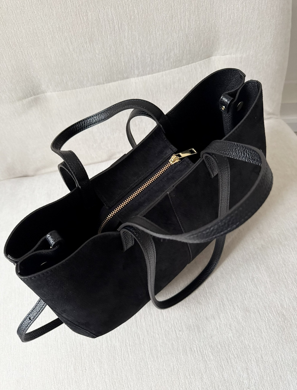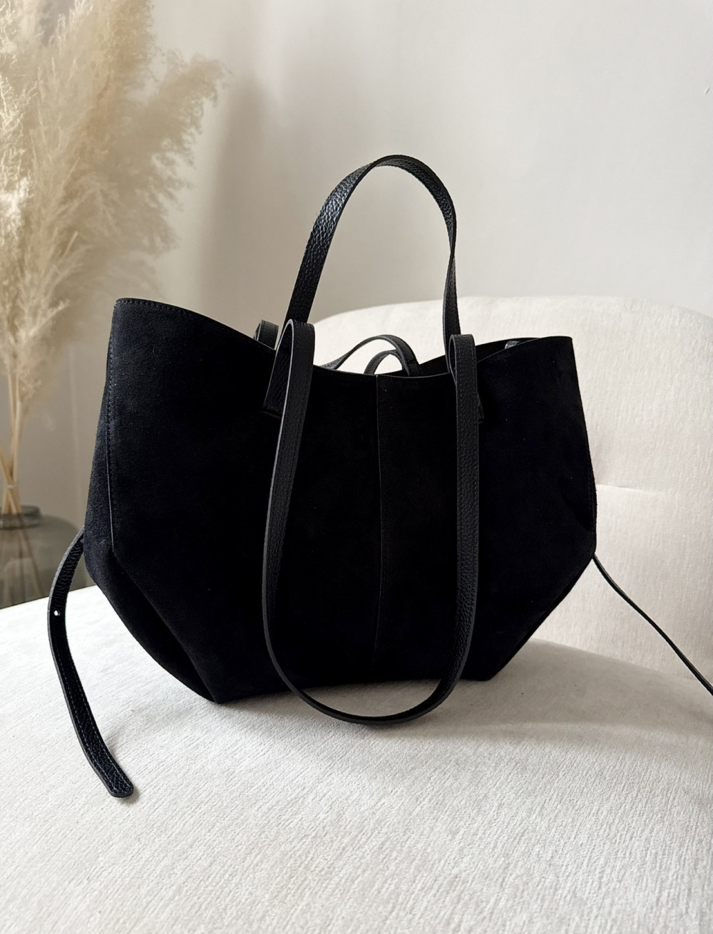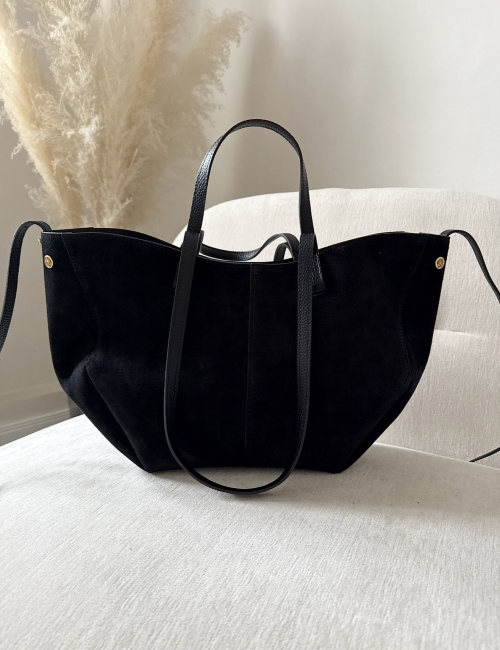 Torebka Laura Biaggi Lena to stylowy model wykonany z połączenia naturalnej skóry i zamszu. Jej minimalistyczna forma i elegancki czarny kolor sprawiają, że doskonale komponuje się z każdą stylizacją — zarówno codzienną, jak i bardziej formalną.