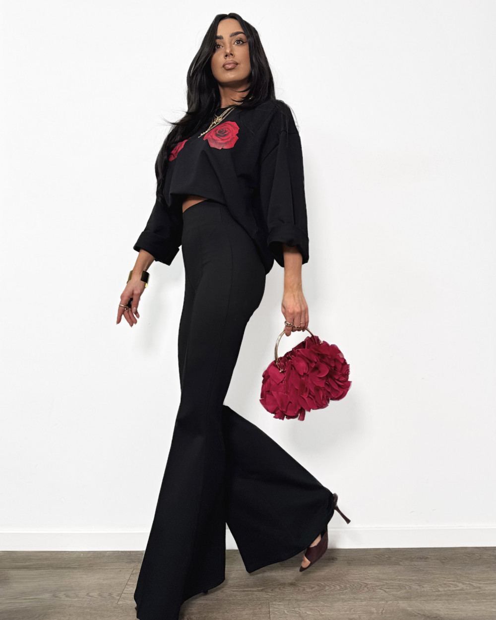 Czarne spodnie dzwony La Milla to model, który podkreśla sylwetkę i nadaje stylizacji nowoczesnego charakteru. Wykonane z elastycznego, miękkiego materiału, świetnie dopasowują się do figury, wysmuklają nogi i pięknie układają się podczas ruchu.