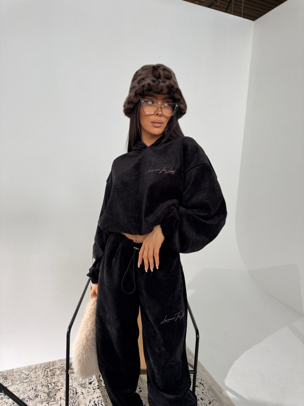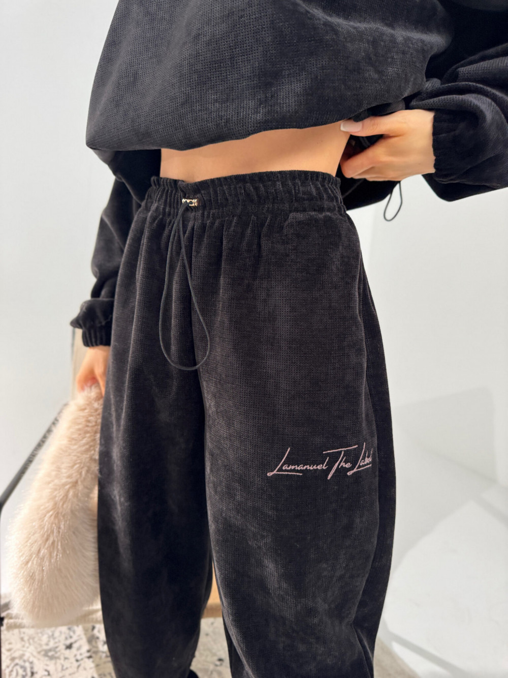 Welurowy komplet dresowy QUEEN czarny La Manuel