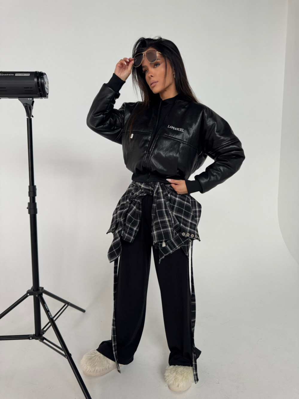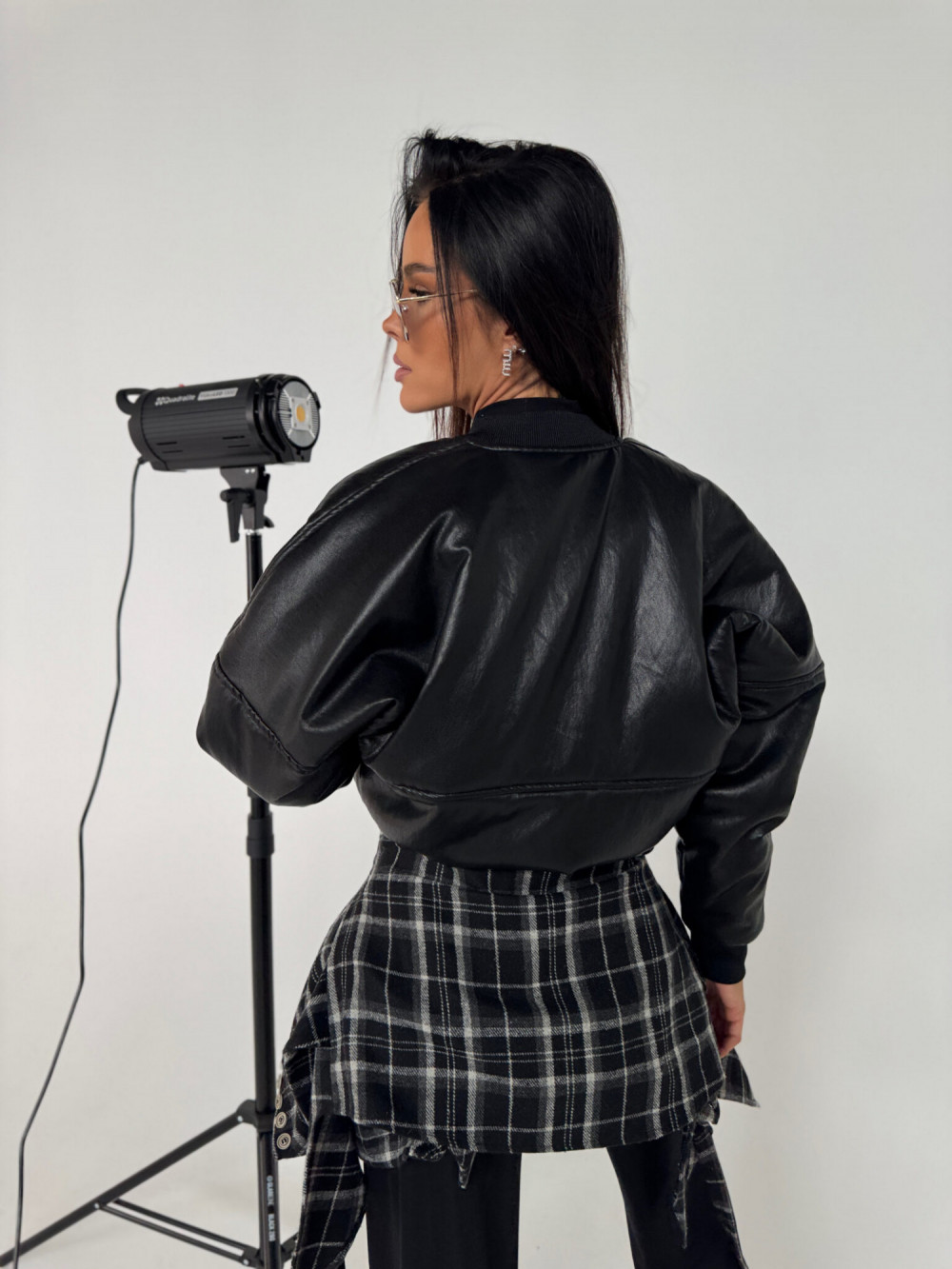 Krótka kurtka wykonana z miękkiej, matowej skóry ekologicznej to propozycja, która łączy miejski charakter z kobiecą pewnością siebie. Model został zaprojektowany tak, aby świetnie układać się na sylwetce – elastyczne ściągacze w pasie i przy mankietach dodają formy, a jednocześnie podkreślają proporcje.