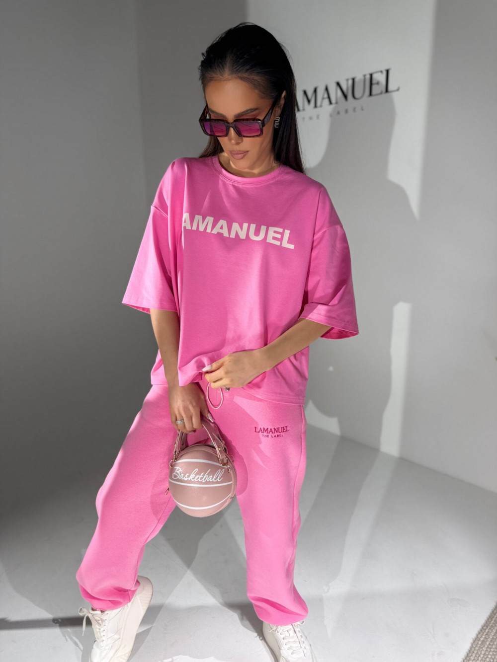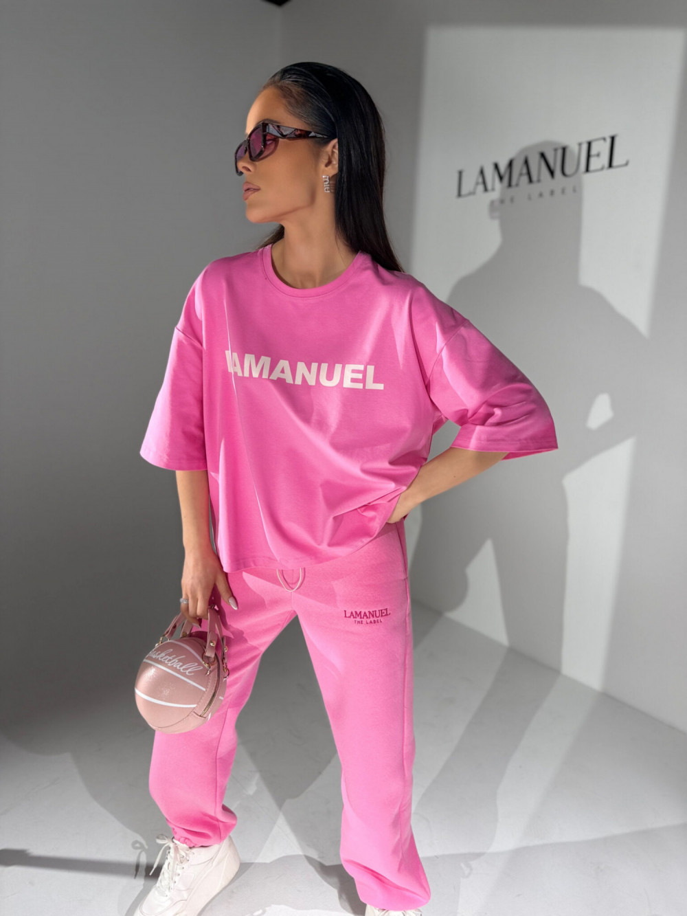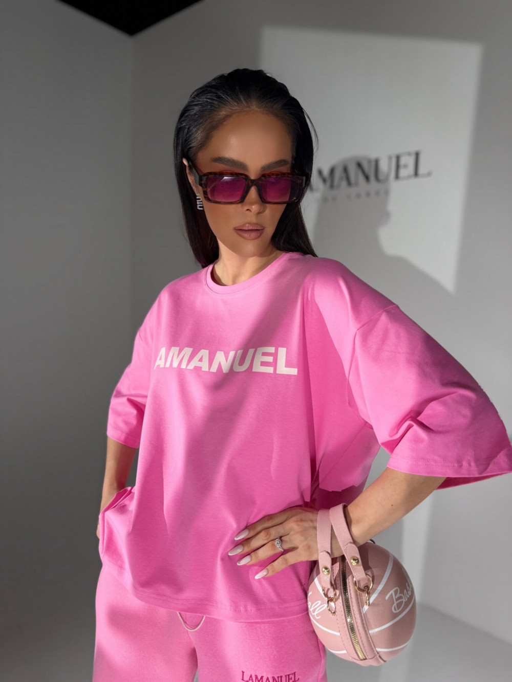 Oversize’owy t-shirt o swobodnym kroju z mocno obniżoną linią ramion i szerokimi rękawami, który zapewnia maksymalny komfort noszenia i nowoczesny look. Na przodzie umieszczone logo La Manuel subtelnie podkreśla charakter modelu i przyciąga spojrzenia. Uniwersalny fason doskonale wpisuje się w styl streetwear, casual oraz sportową elegancję. Koszulka świetnie prezentuje się zarówno noszona solo, jak i w stylizacjach warstwowych – to baza garderoby, która daje pełną swobodę stylizacji i ponadczasowy efekt.