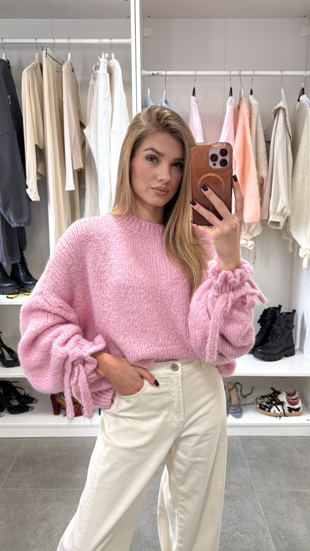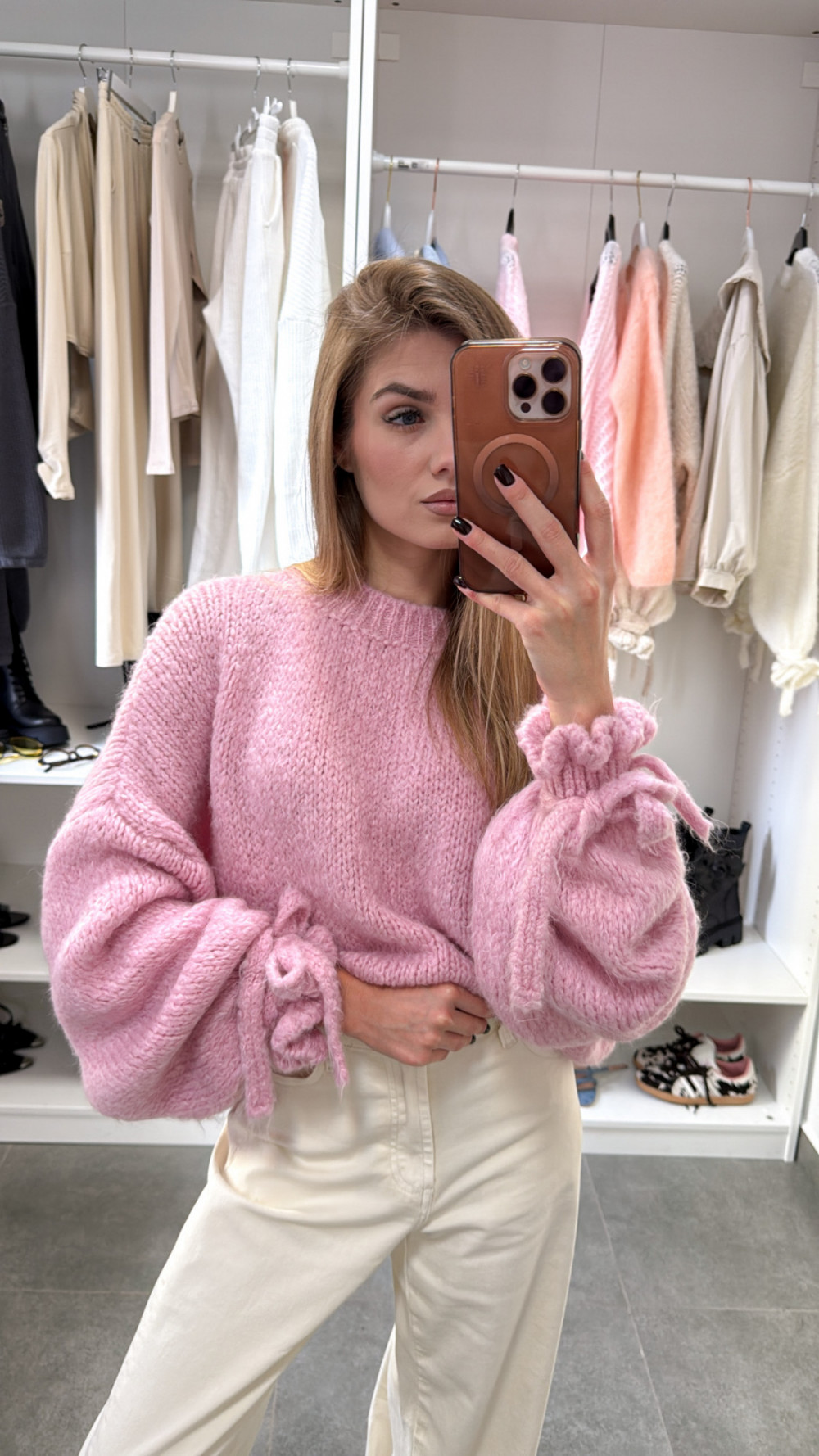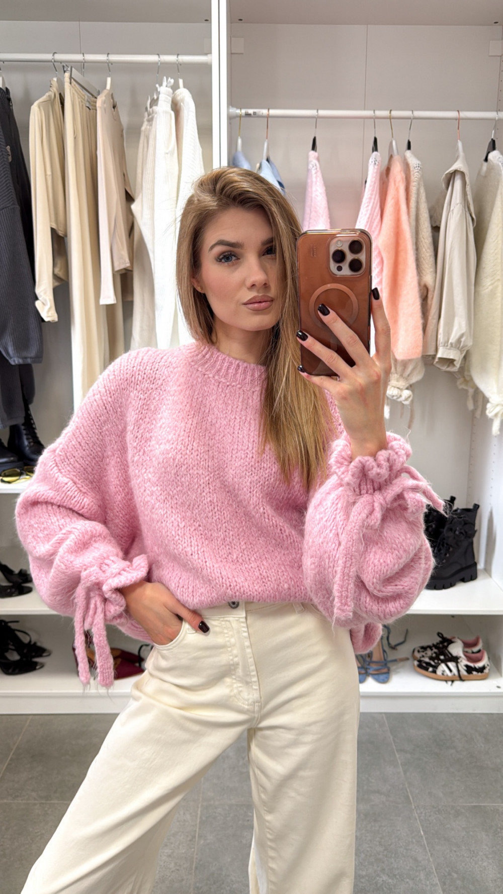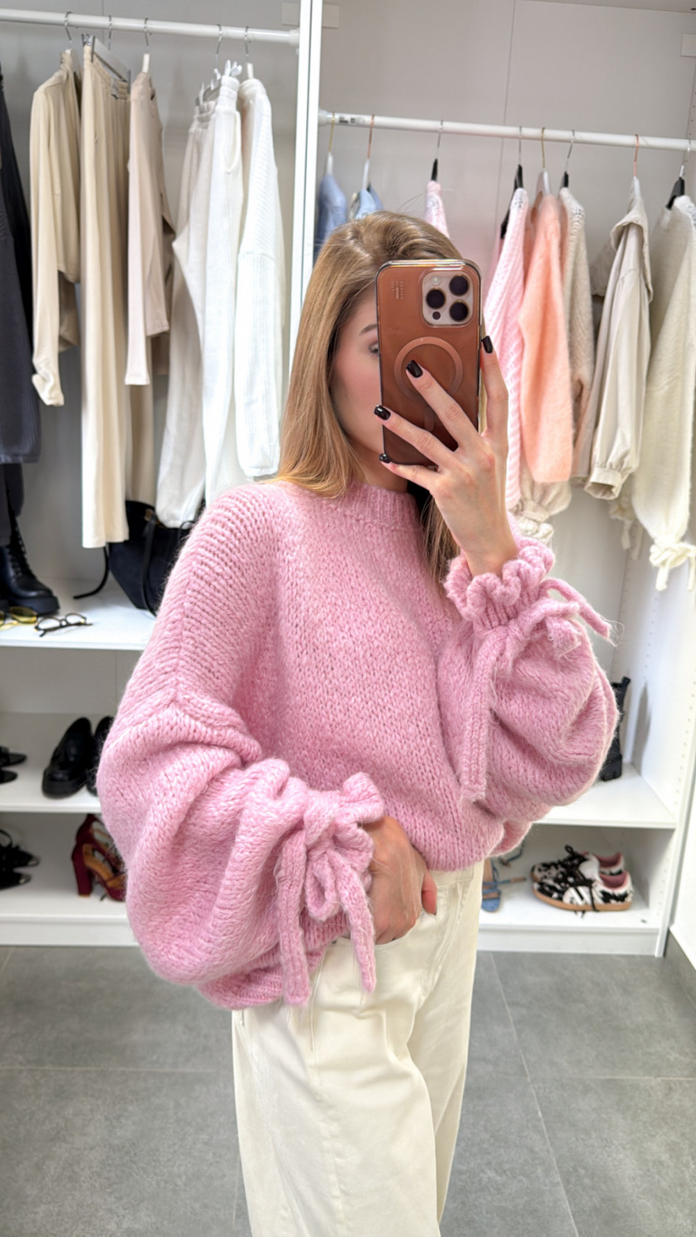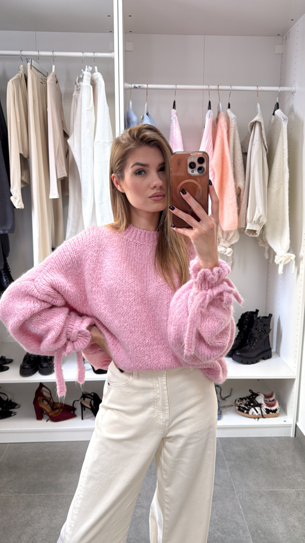 Sweter damski BOWIE ciemny róż z kokardami na rękawach