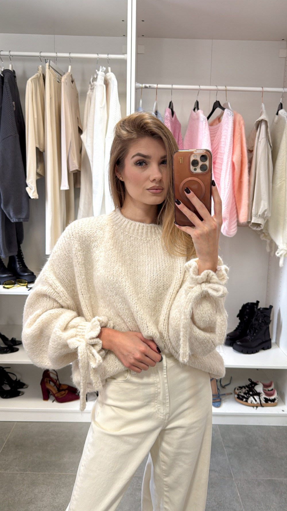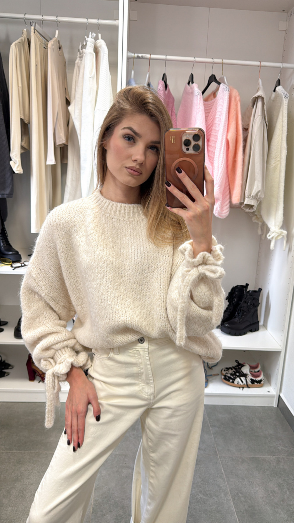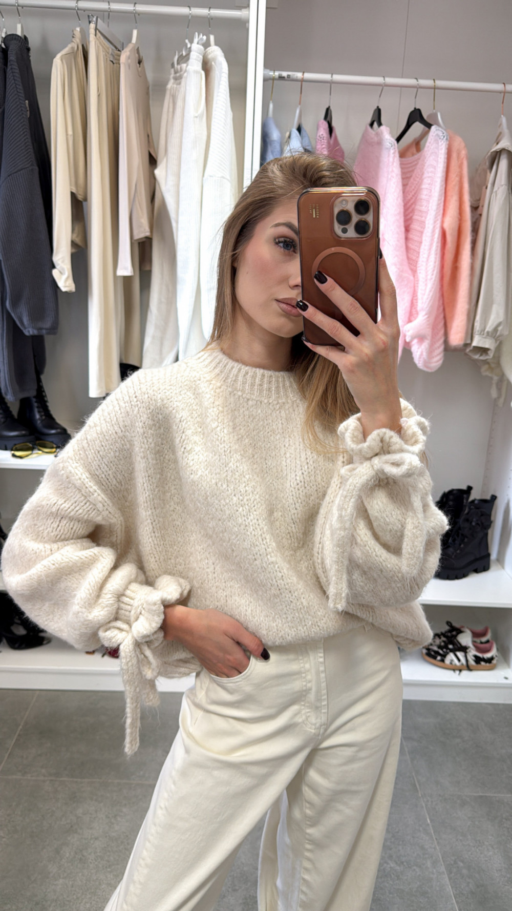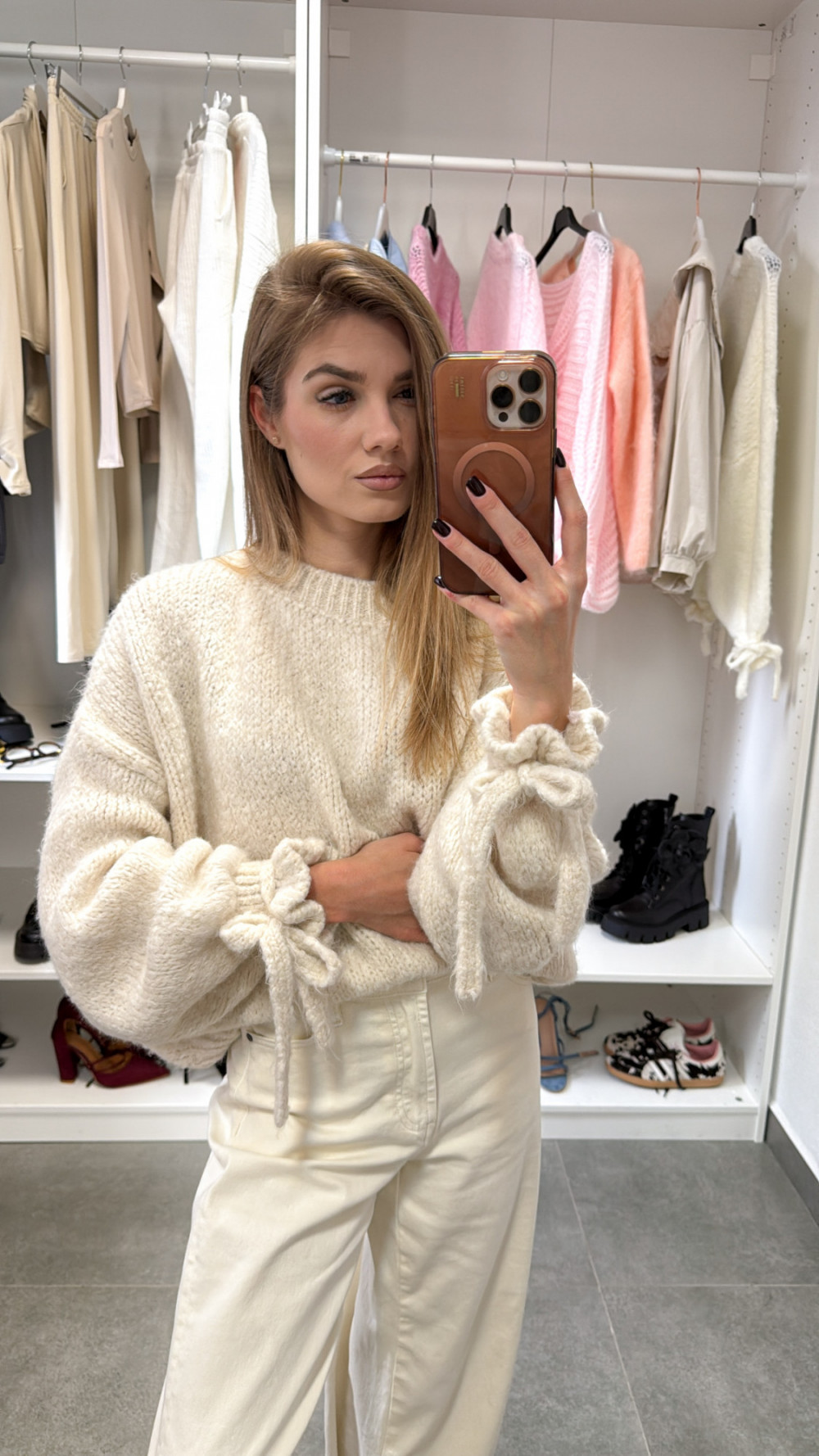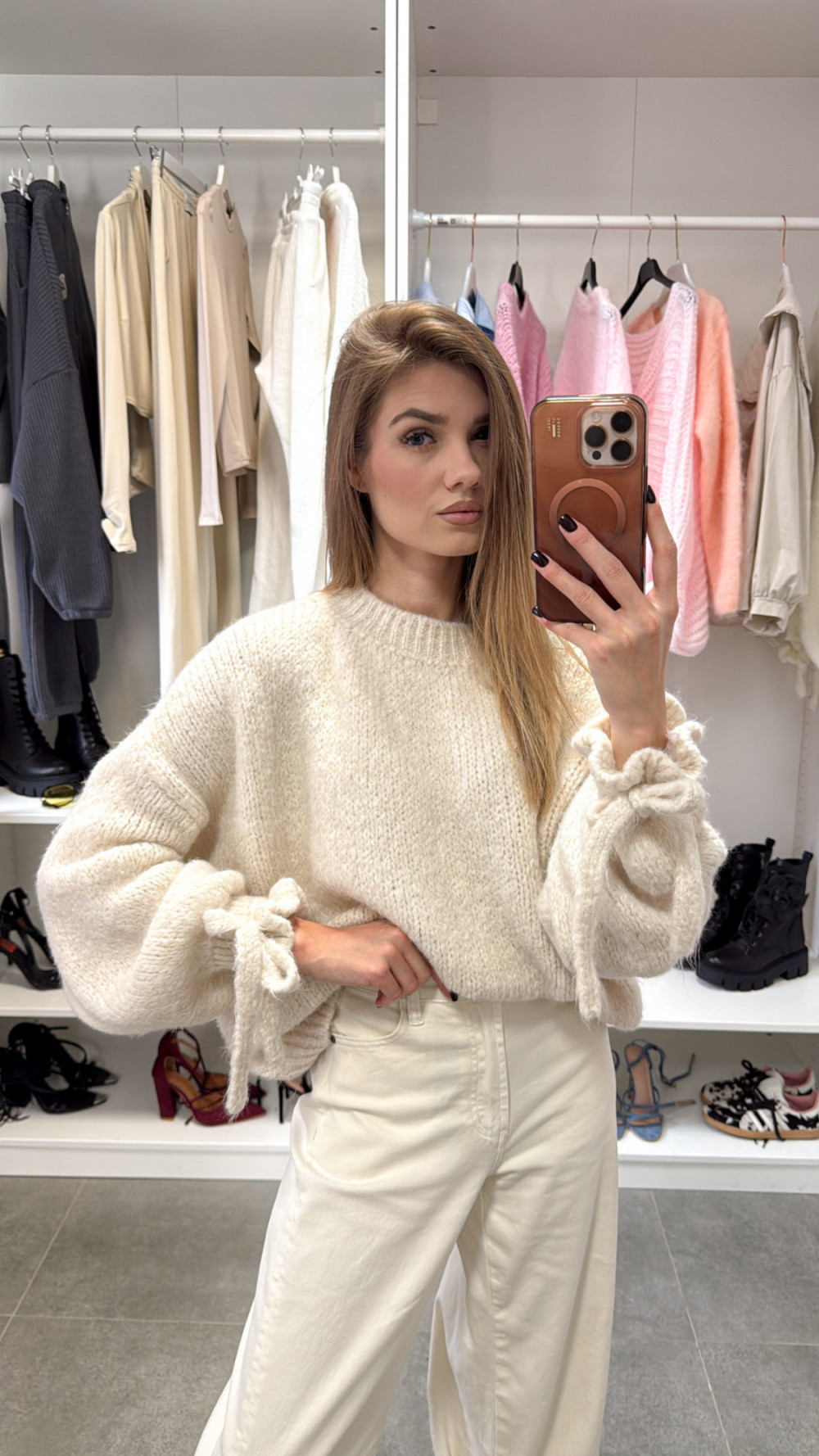 Sweter damski BOWIE jasny beż z kokardami na rękawach