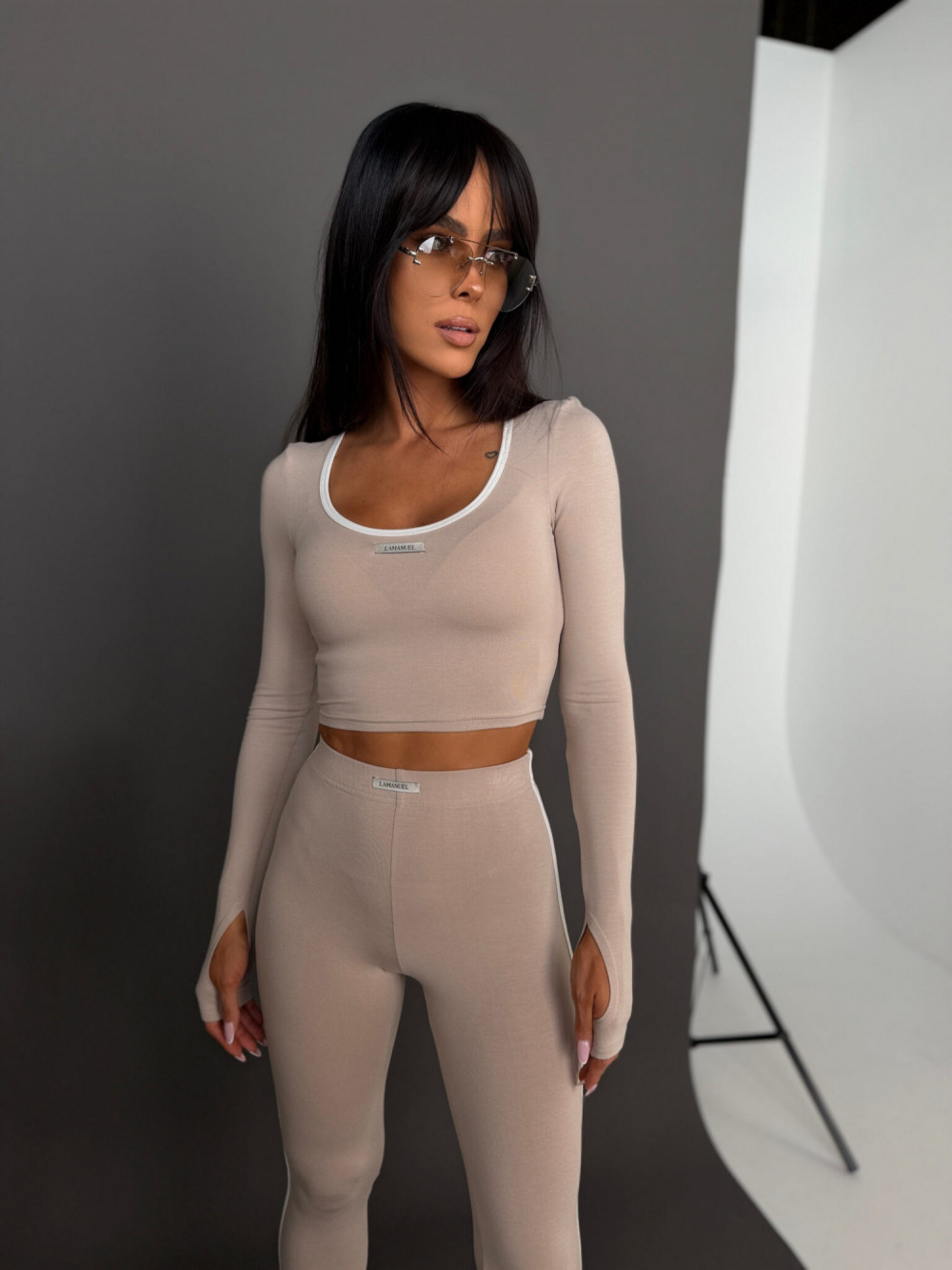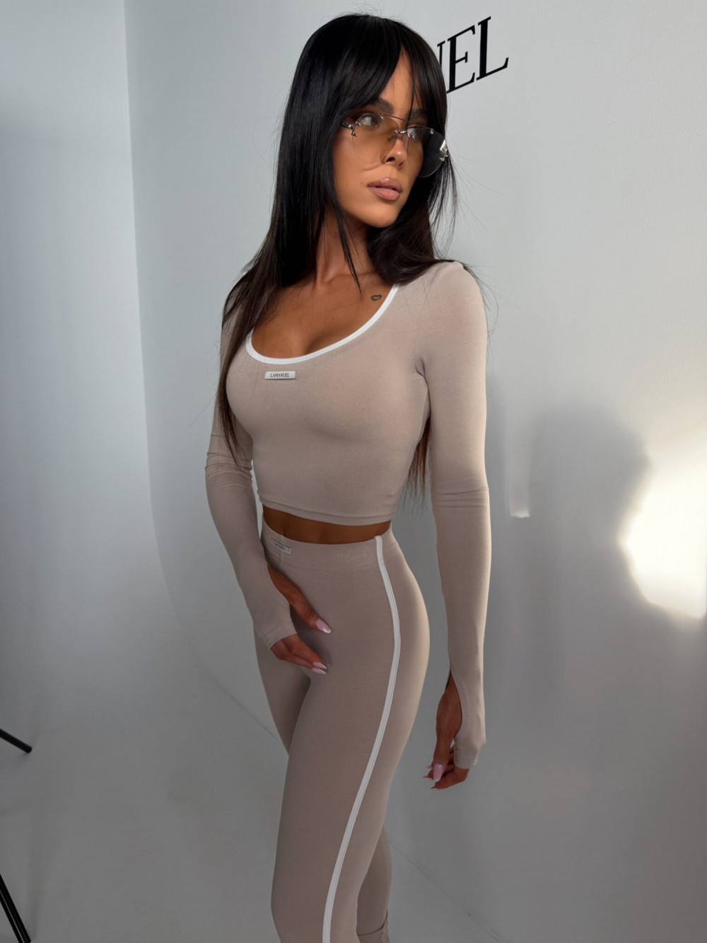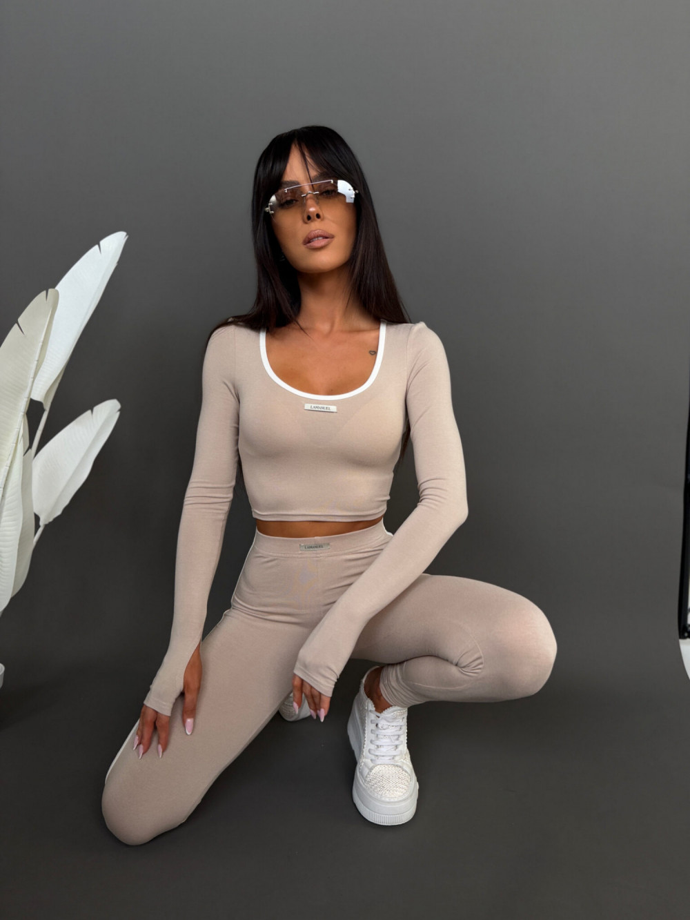 Beżowy komplet damski THE SPOT top legginsy La Manuel