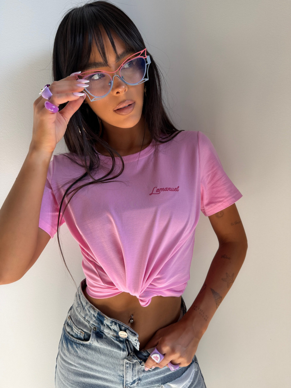 Różowy t-shirt damski POSITIVE La Manuel to dopasowana, kobieca baza, która łączy komfort z subtelnym, nowoczesnym stylem. Miękka dzianina i klasyczny, wydłużony krój sprawiają, że model idealnie układa się na sylwetce i pasuje do codziennych stylizacji.