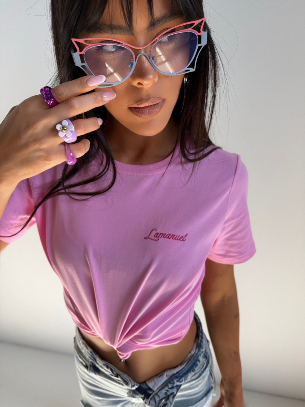 Różowy t-shirt damski POSITIVE dopasowany basic La Manuel