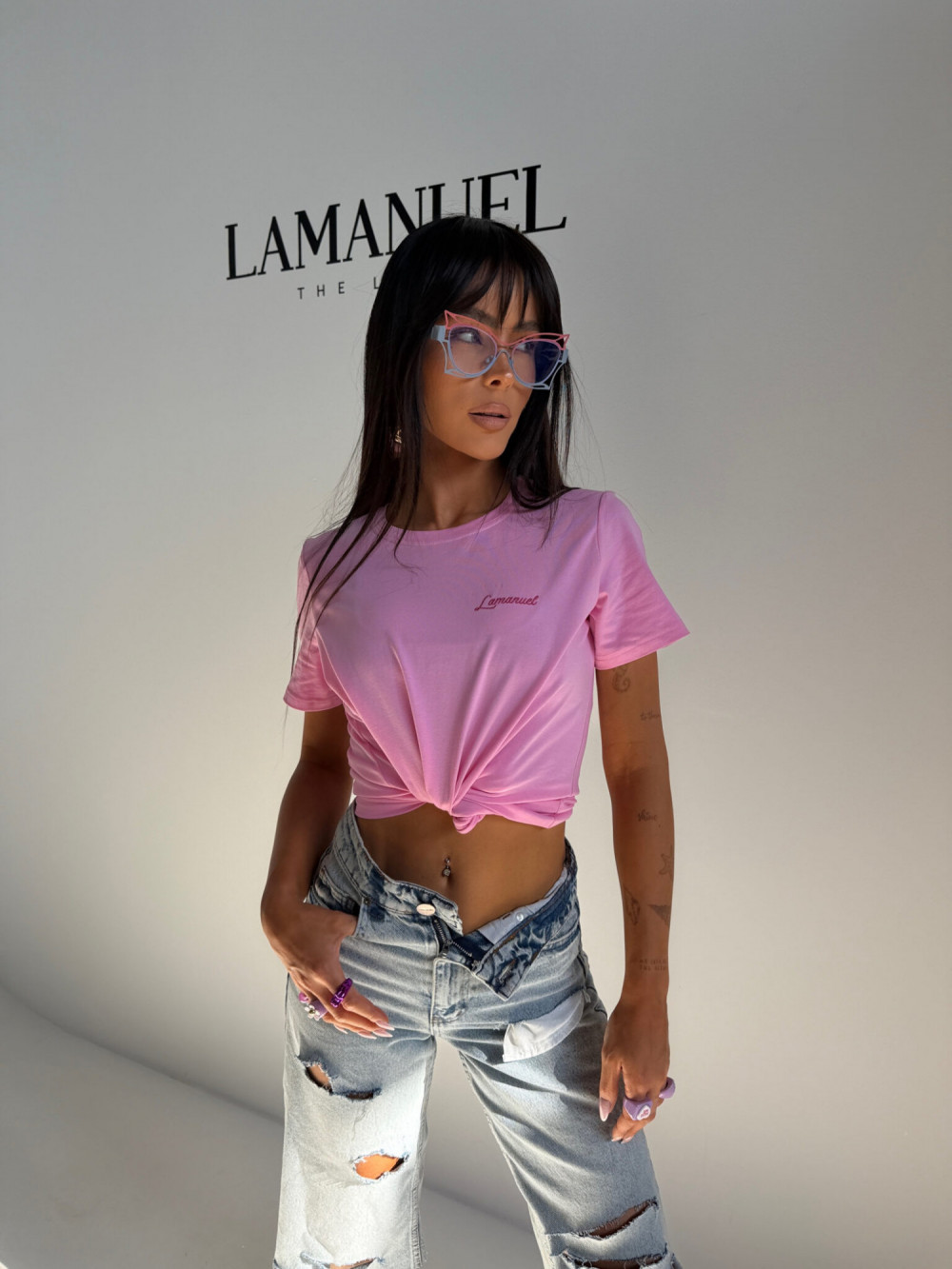 Różowy t-shirt damski to połączenie minimalizmu z delikatnym, kobiecym akcentem. Kolor dodaje świeżości i lekkości stylizacjom, a jednocześnie pozostaje łatwy do łączenia z innymi elementami garderoby. To model, który sprawdzi się zarówno w casualowych, jak i bardziej dopracowanych zestawach.