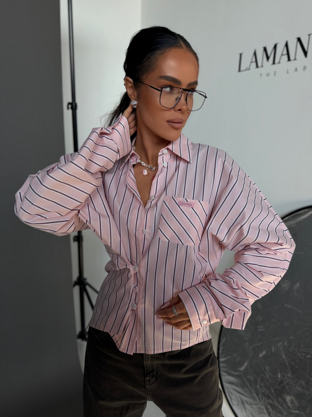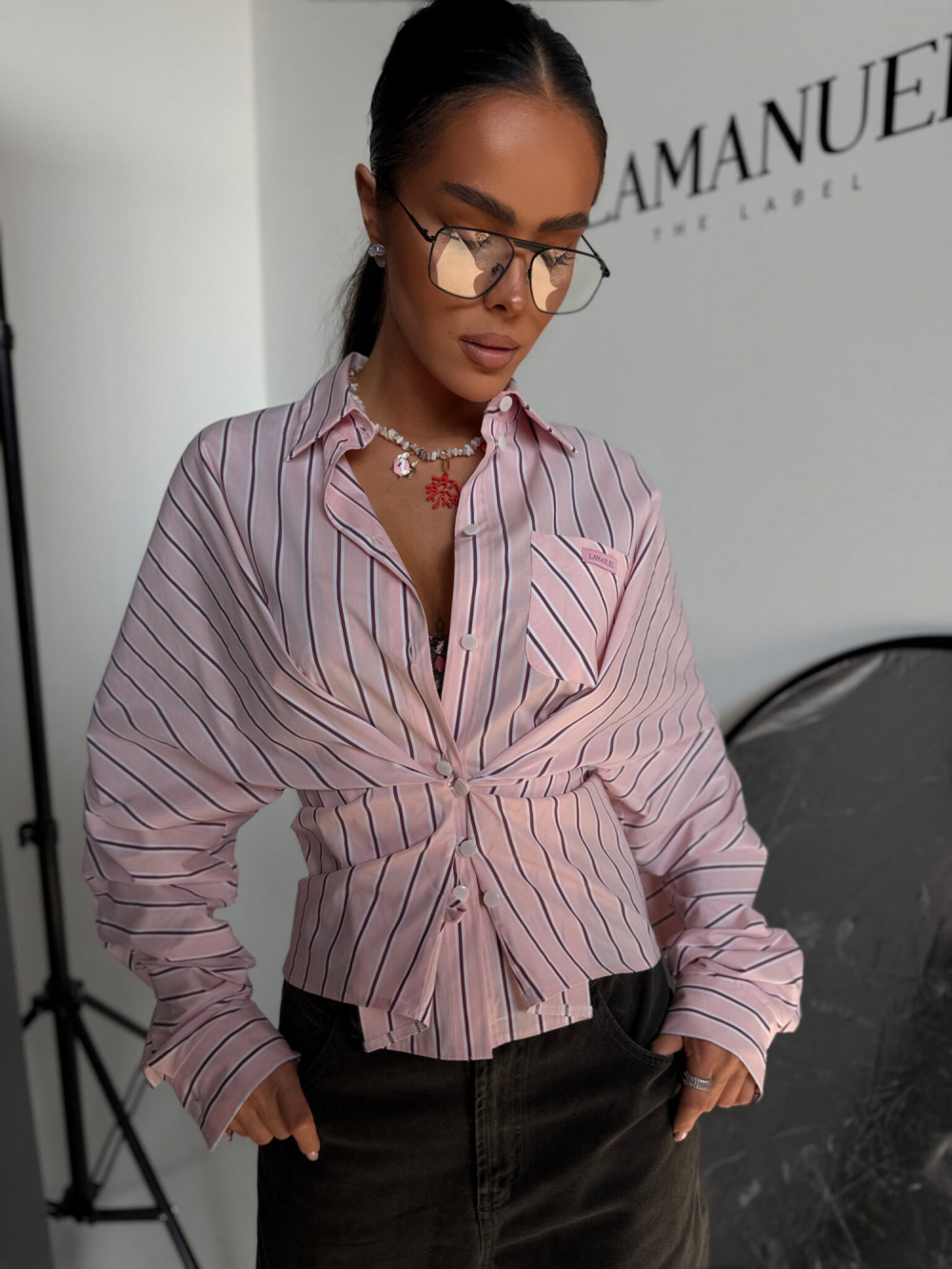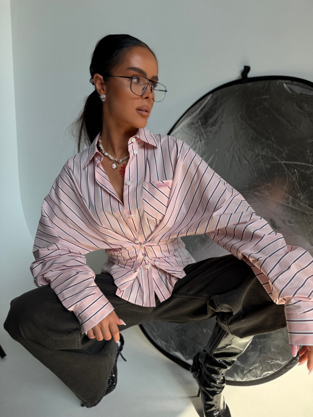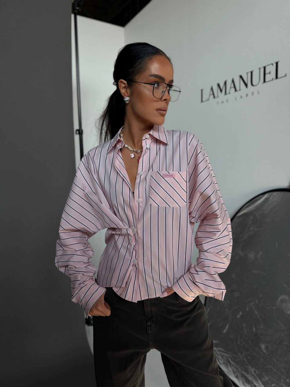 Różowa koszula damska WHISPER oversize paski La Manuel
