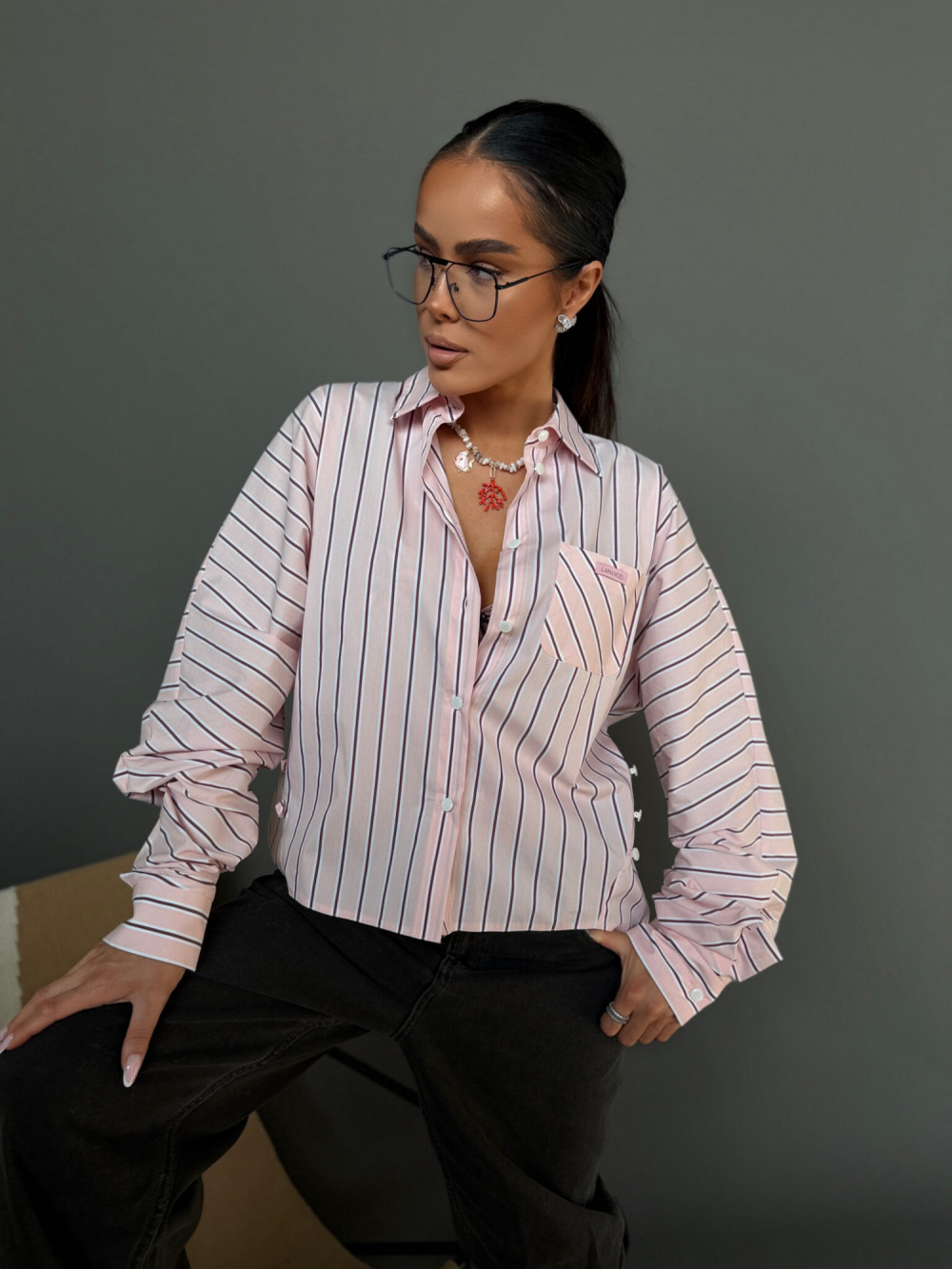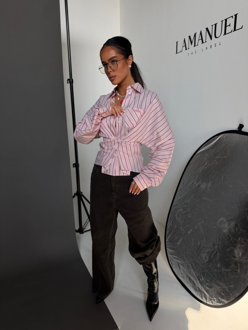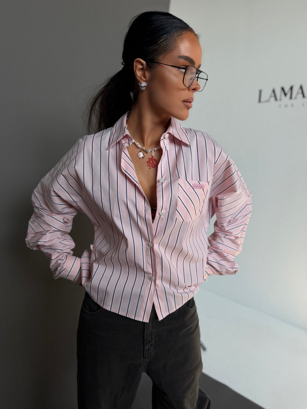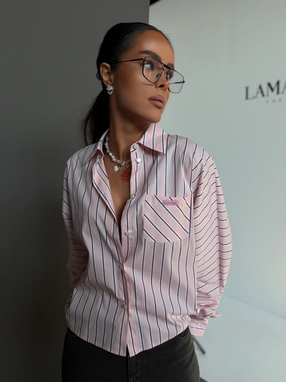 Różowa koszula damska WHISPER oversize paski La Manuel