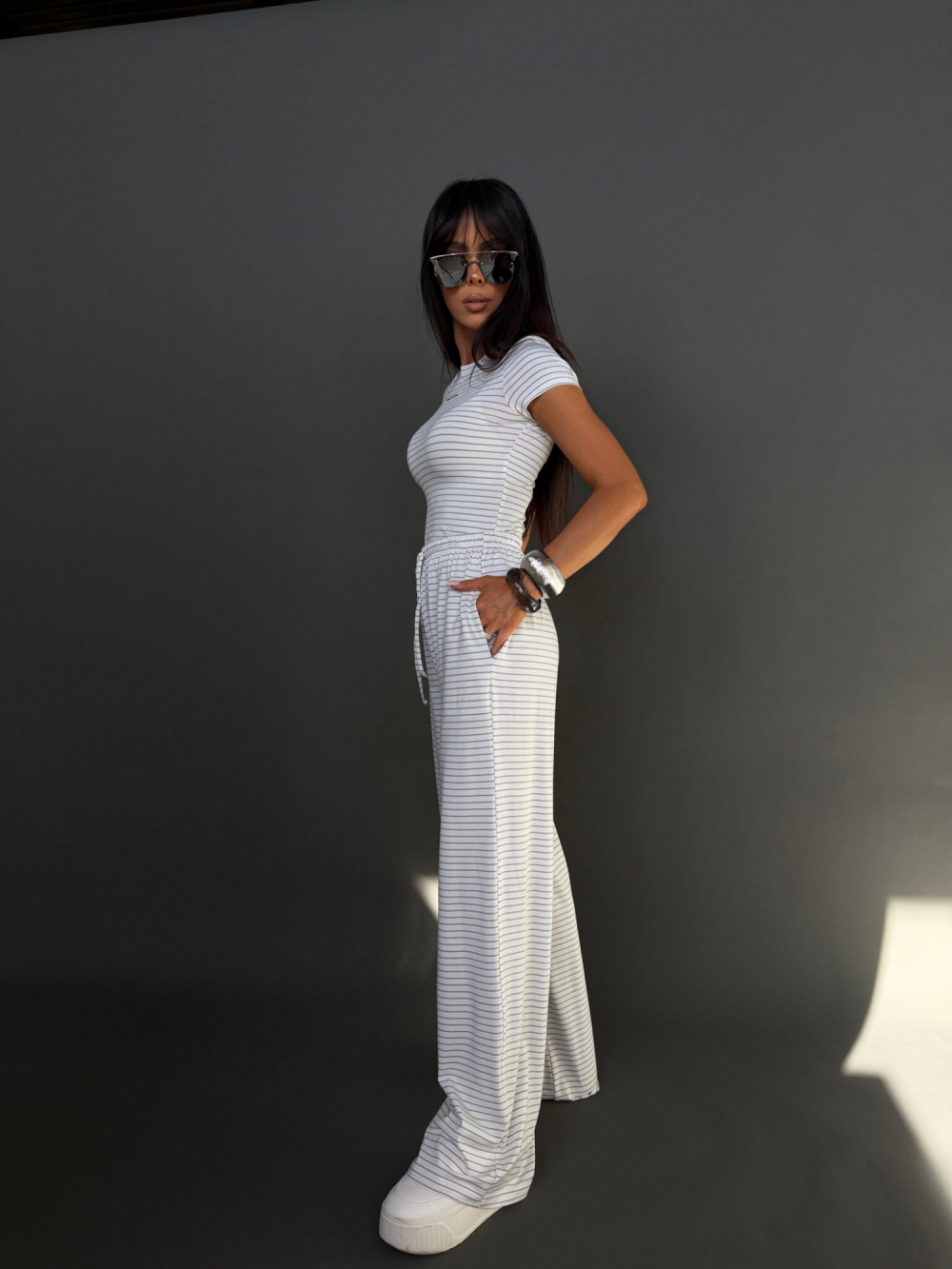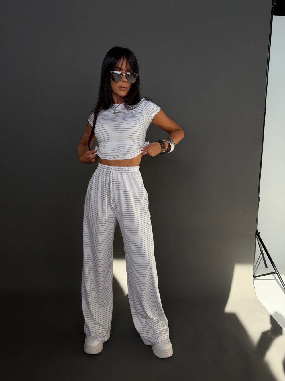 Komplet damski INSIDER ecru top spodnie szeroka nogawka La Manuel